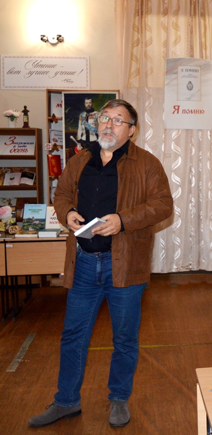 25 октября в читальном зале ЦГБ им. А. С. Пушкина для членов Союза ревнителей Памяти Императора Николая II, гостей и читателей состоялся литературно-музыкальный вечер «Я помню старую Россию…», в рамках которого был представлен сборник поэзии Белой эмиграции «Я помню». Организатор – заслуженный журналист Республики Крым Алексей Васильев.