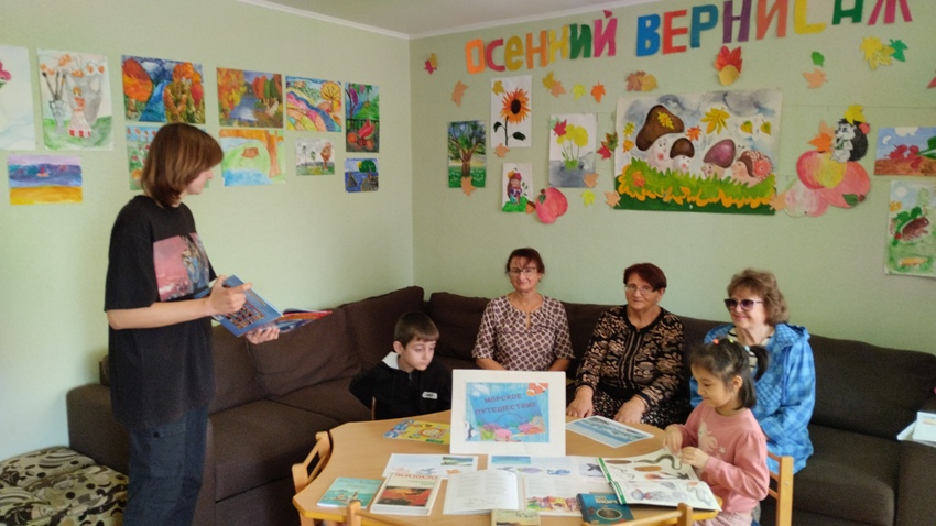 Участники познакомились с книгами и альбомами из фонда библиотеки, отгадывали загадки, вспоминали слова, связанные с морем и его обитателями.
