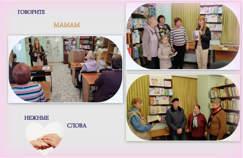 Библиотекарь абонемента поздравила гостей с прекрасным праздником. Присутствующие познакомились с историей праздника, с семейными традициями древней Руси, узнали, что в разный странах день матери отмечается в разное время года. Остается неизменным только одно — это любовь и уважение к маме.
