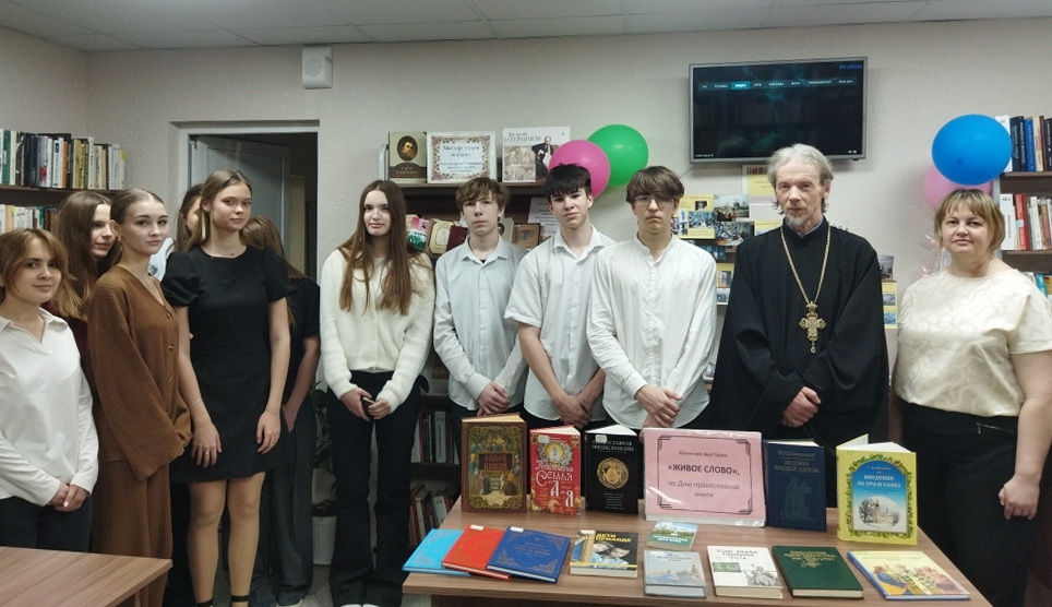 Отец Вадим рассказал о появлении на Руси первой печатной книги и её создателе – Иване Фёдорове, о значительном влиянии православной книги на развитие письменности на Руси, познакомил учащихся с православными книгами. Касаясь современного мира полного цифровыми носителями, отец Вадим акцентировал внимание, что священная книга является носителем «живого слова» и ее нельзя заменить только современными технологиями.