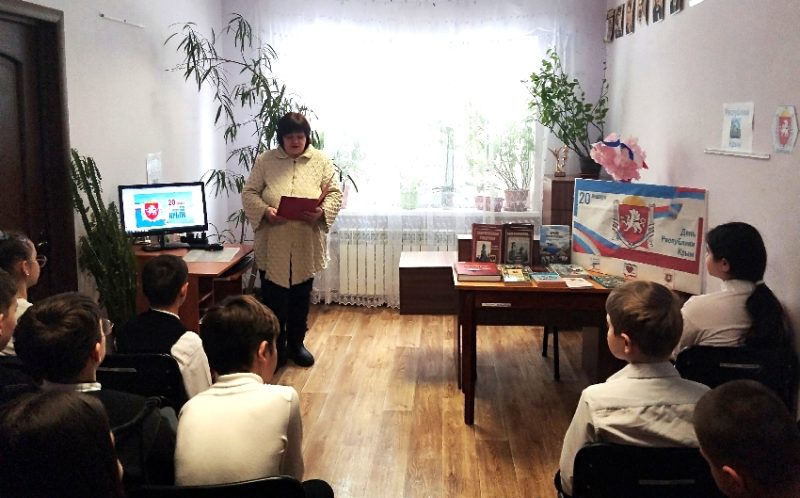 Ко Дню Республики Крым в рамках проекта «Отечеству верны!» библиотека-филиал № 17 им. Г. К. Жукова для учащихся 4 класса МБОУ «СОШ № 29 им. Г. К. Жукова» провела историко-краеведческий экскурс «Мой Крым – Великой России частица».