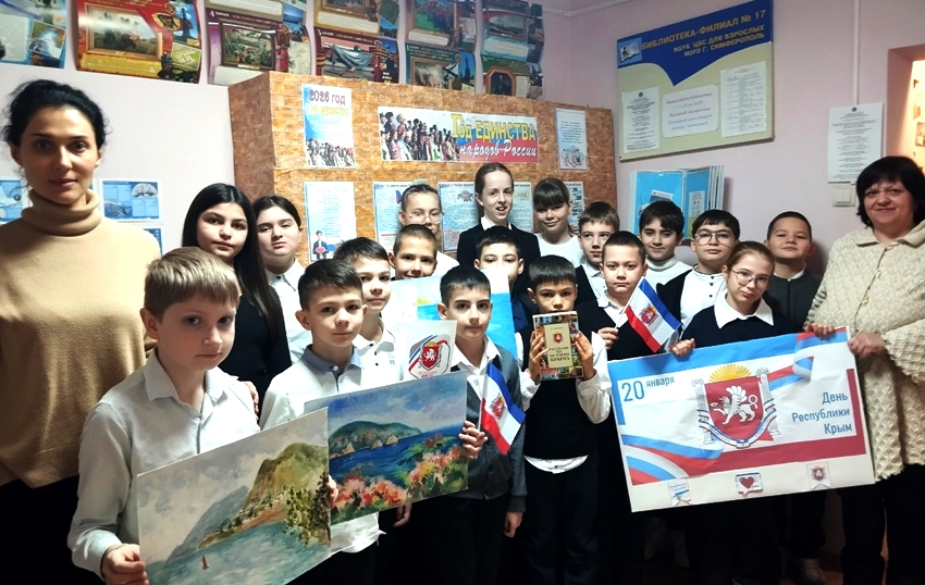 Ко Дню Республики Крым в рамках проекта «Отечеству верны!» библиотека-филиал № 17 им. Г. К. Жукова для учащихся 4 класса МБОУ «СОШ № 29 им. Г. К. Жукова» провела историко-краеведческий экскурс «Мой Крым – Великой России частица».