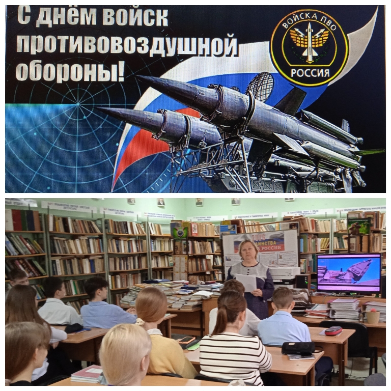 Библиотекарь ознакомила участников мероприятия с историей и значением войск ПВО сухопутных войск России, которые уже более ста лет защищают рубежи нашей страны. За это время они прошли путь от отдельных зенитных установок до мощных зенитно-ракетных комплексов, способных решать самые сложные задачи.