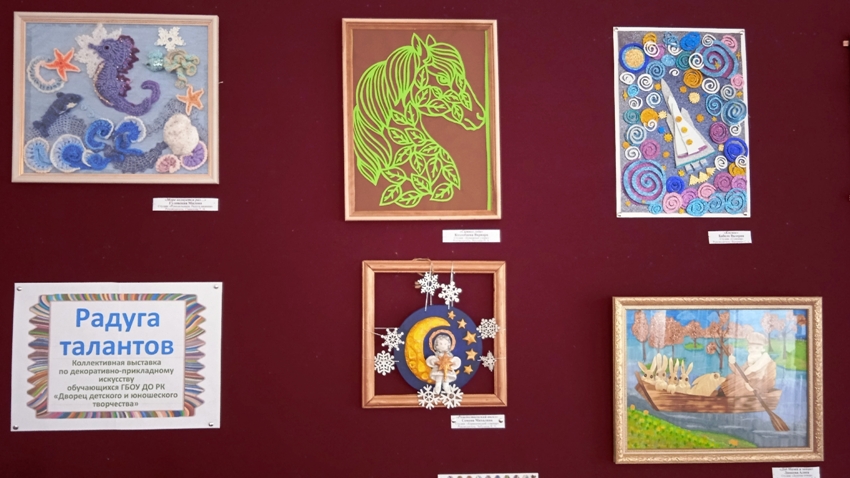 Это настоящий калейдоскоп детского творчества, собранный из работ юных талантов. На выставке представлены великолепно выполненные поделки девчонок и мальчишек, посещающих различные студии ГБОУ ДО РК «Дворец детского и юношеского творчества».